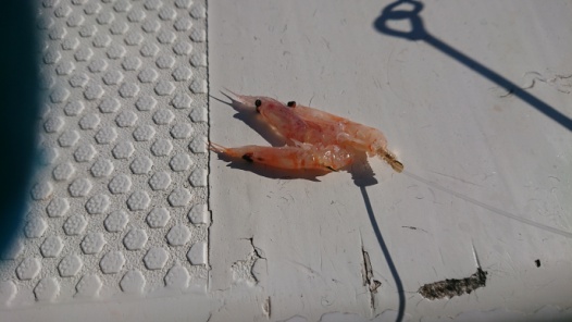 コマセを籠につめて、針にエサのオキアミをつけて投入です。